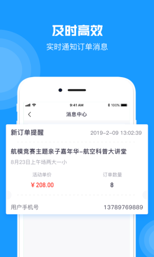 实时通知订单消息,及时跟进每一笔订单,不错过任何一个机会。