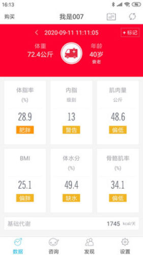 通过我们体脂秤的测量,642机器人APP蓝牙连接获取体脂秤的数据,可以看到身体成份指数从而判断身体健康状况,