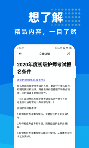 执业护师考试,就用执业护师宝典。完善的考试介绍和报考指南,还有实时更新的海量考试动态,是您备考执业护师的好助手。