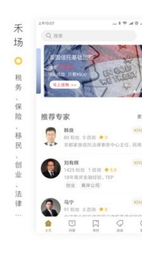禾场app专注的领域包括:法律、税务、保险、移民、留学、生活方式、创业、领导力、房产、家族办公室、慈善等等。