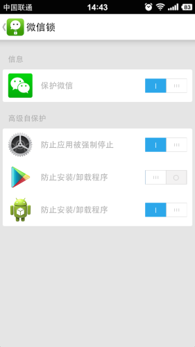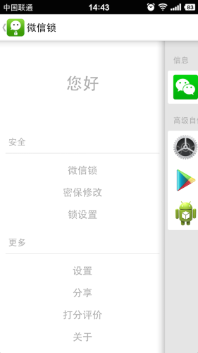 7、通知栏显示,防止锁保护被关闭。微信锁将可以解决您上述的所有问题!