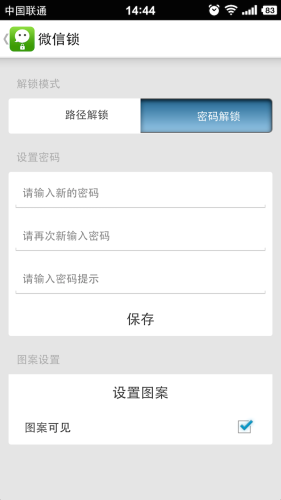 初次使用会需要您设置密码与密保,设置完毕后,您只需锁定住微信,即可享受微信锁对您微信的完全保护。