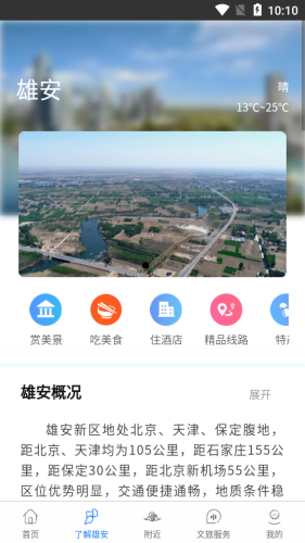雄安文旅app,旅游智慧服务管理平台。软件提供雄安景区、美食、文创、特产服务,支持景区酒店预约,为游客在旅游信息获取、文化旅游行程规划提供全方位的服务。