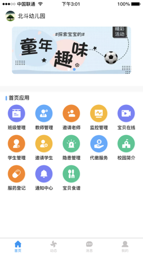 老师可以手机设置、查看校园内的实时状态,老师和家长可以共同记录宝宝成长美好瞬间。