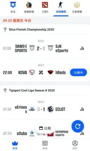 动动电竞是一个专为英雄联盟LOL,DOTA2、等主流游戏赛事提供实时动态的赛事数据,帮助每一位电竞赛事爱好者辅助分析得电竞APP。