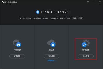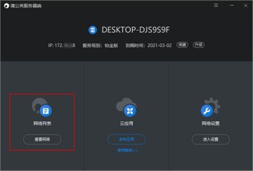 登录成功后可查看到服务端的主要三大功能:1.网络列表,2.云应用,3.网络设置。