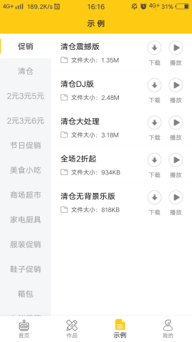 3.海量广告模板:广告促销,地摊叫卖,美食餐厅,产品宣传等众多行业模板任您选择。