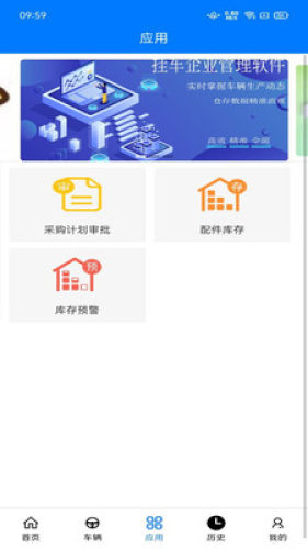 挂车生产管理系统app,挂车企业管理平台。软件拥有采购计划审批、配件库存、库存预警等功能,帮助挂车制作企业连接销售、生产、物料、佣金等方面,提高效率收益,降低成本。