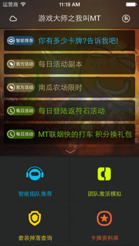 我叫mt大师下ios版无需越狱就能实现智能组队、组合模拟、套装查询等功能,是由手机游戏大师制作的一款功能强大且完全免费的我就MT辅助工具。