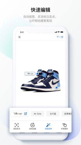 通过智能联动3D环物采集硬件,一键拍摄、云端上传、快速编辑,即可生成全方位、可交互、生动立体的商品3D展示效果,