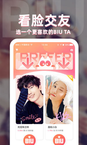 BIUBIUapp是一款非常好用的手机在线交友活动平台,为大家带来了海量的优质单身资源,在线甜蜜互动,从此告别孤单,非常的实用。感兴趣的朋友不要错过了,快来下载体验吧。