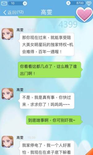 恋爱攻略游戏,一款精彩的恋爱模拟类角色扮演手游。在这里通过模拟聊天的形式展开,玩家可以和你的男神或是女神在线聊天,获取好感,找到你的命定之人。