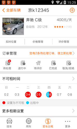 2、租客可以在车辆不可租日历中查看每日价格,价格展示更加清晰明了~