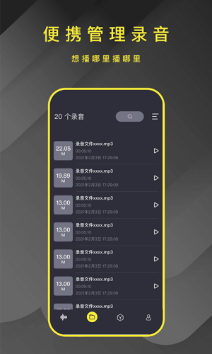 转文字录音笔App,录音转成文字简单;便捷高效录音,快速录制你听到的声音;录音转文字,重要的时刻录一下;便捷管理录音,想播哪里播哪里;录音管理中心,轻松管理个人中心。
