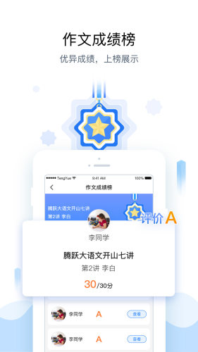 腾跃教师端App,由北京腾跃智汇网络科技有限公司为老师打造的,帮助主班老师轻松教学,在此提供了作文成绩榜、课前测试帮榜、学员签到以及班级管理等功能,助老师轻松教学哦!
