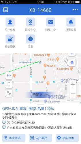 2.电子围栏,可设置范围功能性提醒,让用户更加安全的监控车辆;