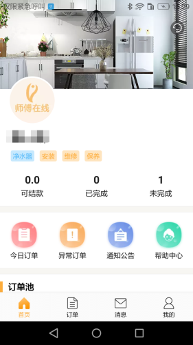 师傅在线App,为师傅提供了一个接单平台,提供了安装、维修以及保养等订单,支持支持净水器、空调、电冰箱、电路、电视剧、家居、家政保洁、热水器、厨卫等类目。