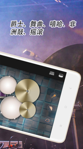 爵士架子鼔是一款简单易用的手机架子鼓模拟器,集合了多种打击乐器为一体,内置多种风格的鼓组,你可以在任何时间,任何地点,随心的开启你的鼔乐,享受这架子鼓的世界!