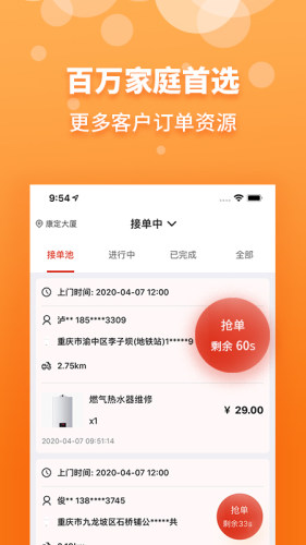 到家客商家版是一个提供家电维修、家庭维修、家政服务等全国生活服务平台,致力于为从事生活服务类的商户提供线上便捷的开店平台,帮助商户解决传统行业获客难,管理难的问题,帮助商户们一键快捷开店,轻松赚钱。