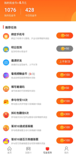 3.丰富的趣味任务 用户通过完成各种各样的任务来赚钱金币、红包。