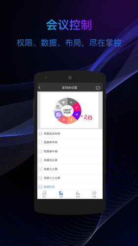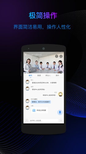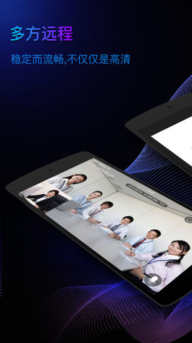 用户可通过手机、PAD、电脑登录,快速地与全球各地团队或客户同步分享语音、视频及文档资料。