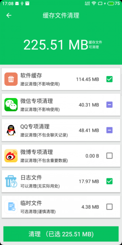 1、专清功能:微信清理、qq清理、微博清理等,所有软件的垃圾无所遁形;