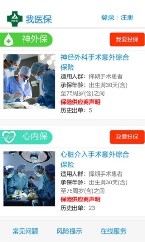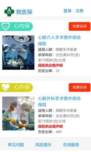 【我医保】是江泰保险经纪股份有限公司开发的一款全新医疗意外风险管理移动互联网工具,包括术来保、母婴保、心内保、心外保及神外保等产品,未来还将为其它科室定制专业化的风险管理产品和工具,以提高患者风险意识,转嫁意外风险;它具有结果导向、快速理赔;投保、操作便捷;一健报案,24小时服务等特点,还能为客户提供进一步的风险告知和防控等简便高效、周到的服务。