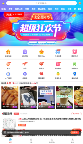 2、所有商品进行了详细分类,汇集了多个购物平台优质好货。