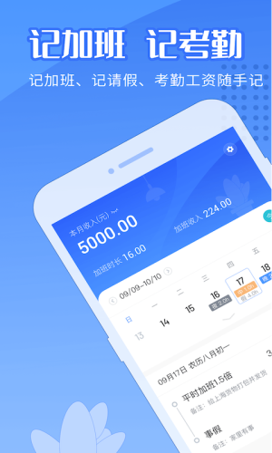 辛勤的劳动值得被明明白白的记录,让随手记加班App为您的每一分工资保驾护航。