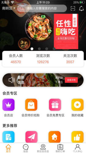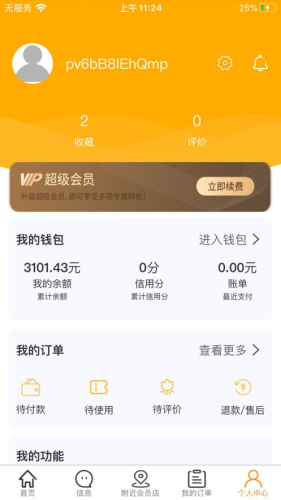 个人中心有普通用户和商家端的,店铺收藏,我的评价,我的订单,会员详情。