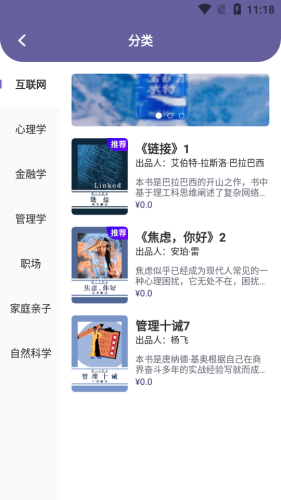 包含了互联网技术、社会心理学、投资学、企业管理学、初入职场、家中亲子、社会科学等种类,大伙儿能够 依据不一样的要求畅读学习。