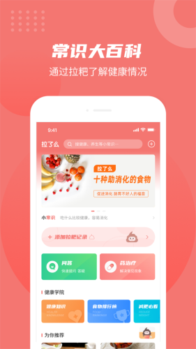 拉了么app,健康养生知识平台。软件通过健康知识、营养食谱、以及j减肥专区,让用户了解更多肠胃健康知识,还有如厕日期记录,帮助定制科学的饮食习惯,保持健康。