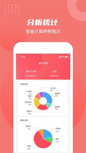 不经是每次有分析还对你记录的所有的次数进行了统计制图分析,以便你随时张可控你的粑粑健康。
