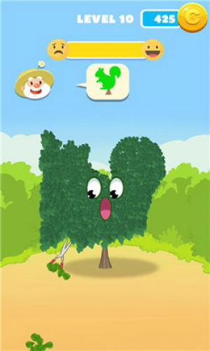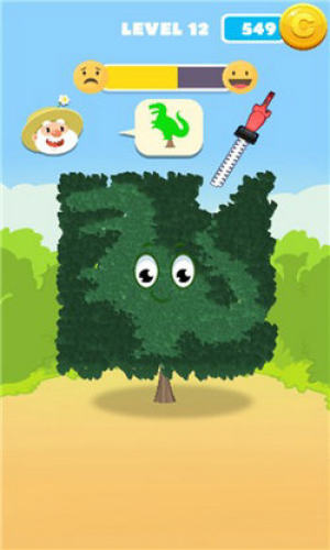 然后使用剪刀修剪树木,并修饰成醒目的形状,完成目标任务,就能赢得相应的奖励。