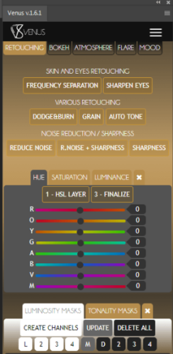ps修饰插件Venus吾爱破解汉化版是一款Adobe Photoshop扩展插件,设计和制造适合所有类型的摄影师,从业余到专业。Venus Panel由专业人士创建 ,是一种技术集中,可帮助您加速,简化和提高工作质量。