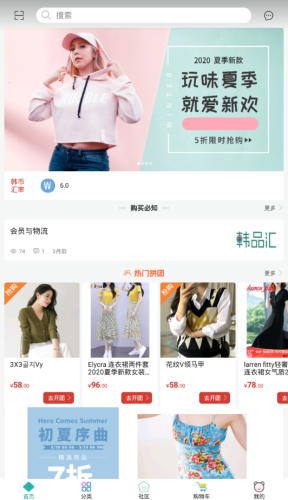 韩品汇app每日上新时下新品,并推出特价打折,拼团秒杀,拍视频得奖金等活动。