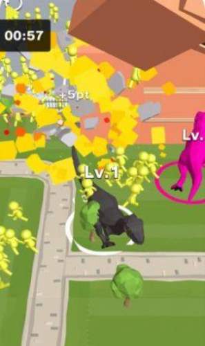 3、将化身为霸王龙在城市里进行破坏,消灭一切想要阻止你的人类,操作简单,尽情的破坏。