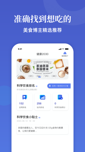 健康2030是根据科学数据,进行用户的健康饮食安排,用户可以清楚的知道,自己最近吃的什么,