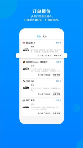线上发布车辆服务需求,线下商家参与报价