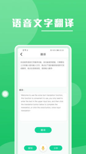 ·实时在线翻译,语音在线翻译成文字或英语,已转换文字可一键翻译成英文。