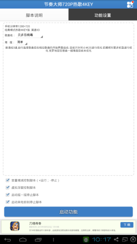 节奏大师720P热歌4KEY是什么?它是一款节奏大师4KEY热歌分享应用,支持1280*720的分辨率,再者使用本脚本需获取root权限,否则无法对游戏进行修改!