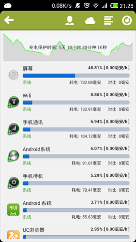 优化提示默认开启,适合刚接触本软件的用户,会提示你软件为你提升了多少电量。有时候会比较频繁,用了一段时间,确定有效后就可以关闭。软件通过不断地更新,以各种方式对内核进行优化来保护你手机的电量,可以理解为“反跳电”,用上本软件之后你会发现手机不再跳电了,有的时候还能帮你提高电量(部分手机上电量优化出现的几率较低)。效果图如下(机型:华为C8813Q)