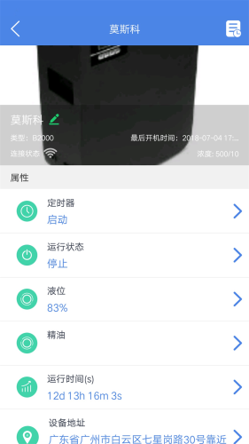点击主页中已配对设备,可进行设备定时开关、香氛浓度调节等操作。