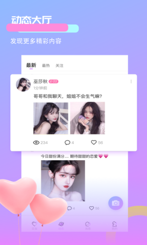 寻找高颜有趣的Ta,这里的异性都是带着诚意,在线找对象即时脱单,快速交友恋爱;