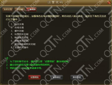 二级密码是为了保护玩家的账号安全而设定的,点击【设置密码】即可设置。