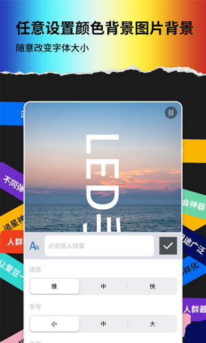 LED手持弹幕显示器app,一款用于制作led滚动弹幕的app,多种字体、颜色、样式任你挑选,设置轻松,玩法简单,自定义滚动速度以及弹幕背景,让接人、表白更省心。