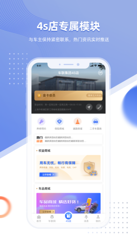 为4s店提供专属模块,和车主保持紧密联系,热门资讯实时推送,提升用户黏性