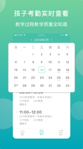 3、孩子考勤实时查看,教学过程教学质量全知道