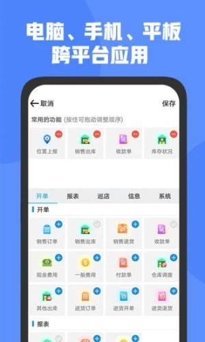 首页功能:用户可以自定义常用功能菜单,实现快速使用系统的目的。
