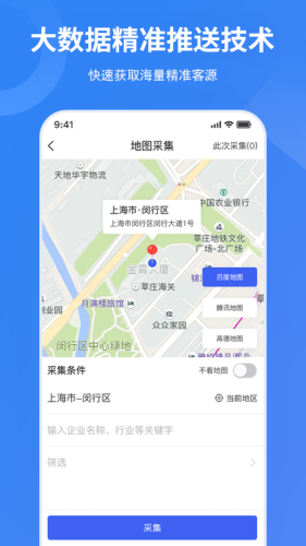 客源采集:汇集多个互联网平台亿级企业信息,支持精准检索,让业务员快速精准找到目标企业,不再为客源烦恼